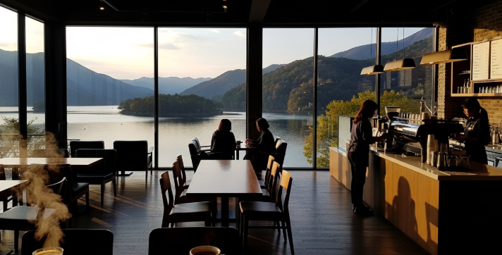 "애플시나몬 크로플을 먹었는데 수제 잼의 풍미가 대단합니다. 그래놀라가 씹히는 식감도 좋았어요. 비엔나 커피의 크림 위로 느껴지는 바닐라빈의 향긋함이 추운 날씨를 잊게 해줍니다. 창밖으로 보이는 호수 뷰를 멍하니 바라보는 것만으로도 충분한 휴식이 되는 곳입니다."