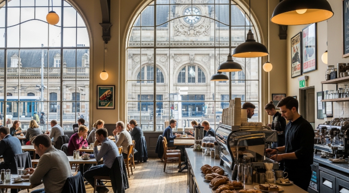 리뷰 5: "에너지가 넘치는 세련된 카페"